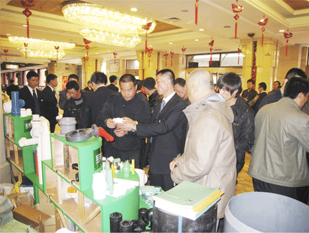 2010年4月20日,在哈爾濱市公濱路滿漢樓大酒店,三百多名宏岳嘉賓共聚一堂。會議從下午5點開始,在聯誼會開始前,與會嘉賓現場參觀了宏岳產品展示區,并與經銷商進行互動問答,氣氛非常熱烈。聯誼會開始后,由宏岳哈爾濱總經銷商騰翔建材齊總致詞,他在講話中預祝聯誼會取得圓滿成功,同時簡要介紹了騰翔建材,并向全體與會客商發出了號召,當他講到“為達到客戶百分之一百零一滿意度而拼搏”和“讓我們乘坐在宏岳管業的大船上,劃起奮斗的雙槳”時,博得了全場持久的熱烈的掌聲。
