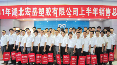 最后,湖北宏岳張思良總經理做總結性發言,湖北宏岳公司自從成立以來,從立項、組建、投產到現在順利運行,克服了一個又一個的難題,取得了一個又一個的突破。銷售也創造了一個又一個的紀錄,公司將繼續提升服務質量,在品牌經營方面多下功夫,努力將宏岳品牌在華中地區乃至整個南方市場迅速崛起,為宏岳集團的全國發展戰略作出應由的貢獻!