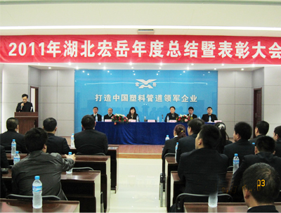 2012年1月17日,湖北宏岳塑膠有限公司2011年度總結表彰暨表彰大會在公司的多功能廳隆重召開。宏岳全體員工120多人參加了此次大會。