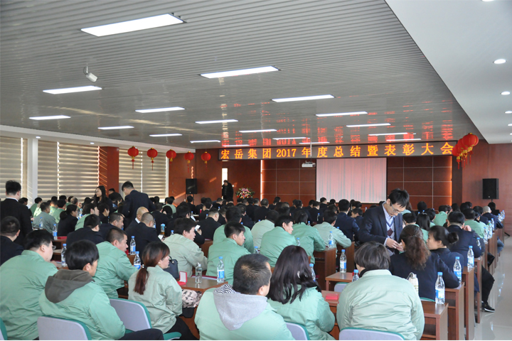 首先大會第一項,由集團總裁馬君先生對2017年工作進行總結,對宏岳集團一年來的發展情況進行了全面、客觀的評價,對過去一年的工作給予了高度的評價和認可。同時也指出2018年及未來發展方向,將宏岳管道打造成為國際品牌,提高國內市場競爭力。其次,由集團辦公室主任王明科先生做集團公司2017年安全生產報告,并對集團安全生產提出更高的要求。最后,對2017年度先進個人及團隊進行表彰環節。