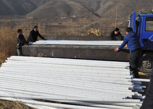 2017年是秦皇島市把實施精準扶貧、精準脫貧作為一項中心任務,因村施策、因戶而行,持續(xù)推進精準幫扶。宏岳集團聯(lián)合秦皇島吉商聯(lián)合會積極相應,采取實際行動幫助幫扶村貧困地區(qū)脫貧致富。本次提供的輸水管道主要用于廟上村果樹種植園的輸水灌溉管網(wǎng)工程,將解決部分果園的澆水灌溉問題,促進果樹豐收。