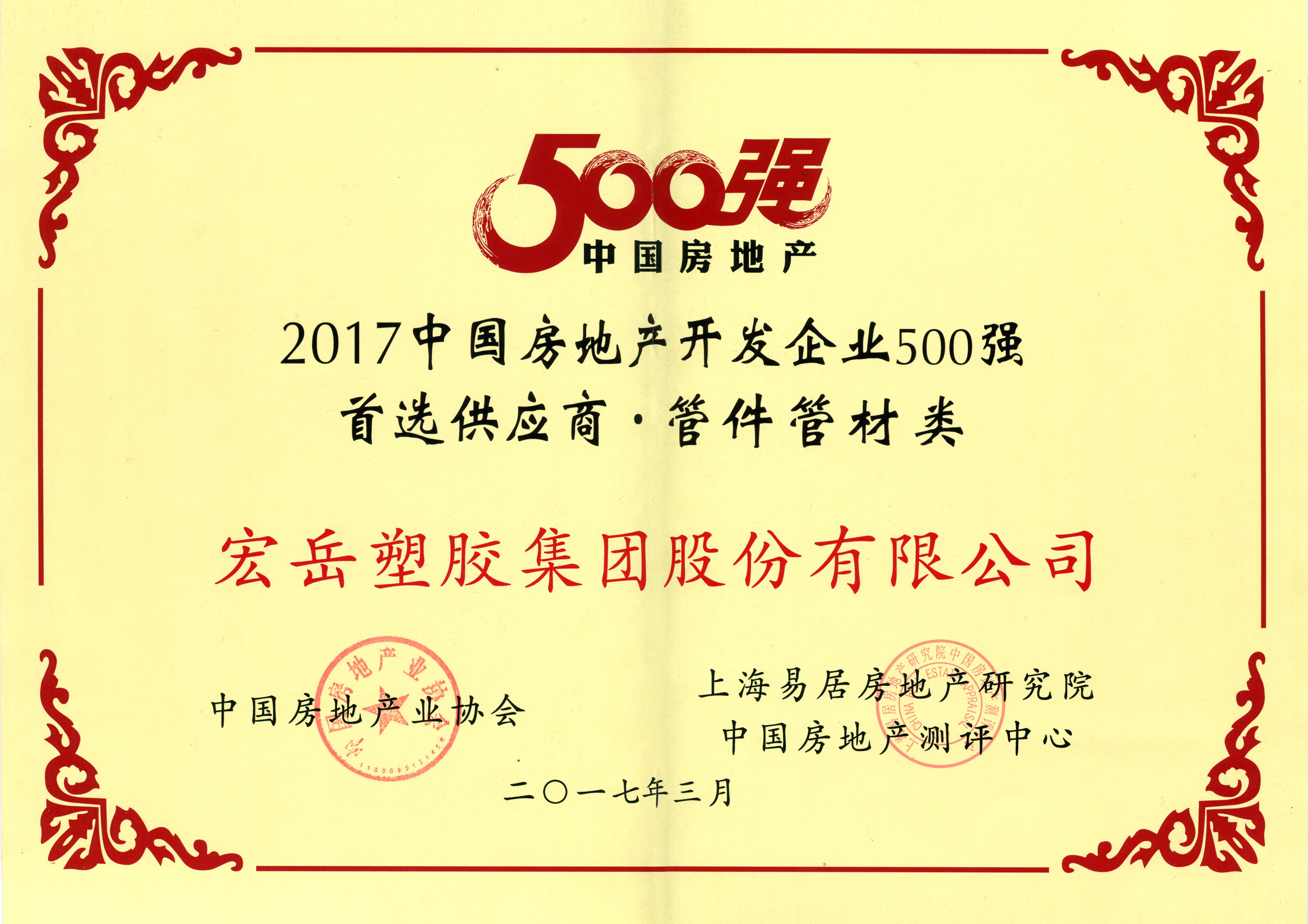 品質是一個企業的靈魂,也是對消費者的一種保證,只有注重品質,才能造就經典品質。宏岳集團憑借過硬的產品質量和完善的服務體系,連續五年被評為中國房地產行業500強首選供應商,充分肯定了宏岳在行業的地位和品質的認證。