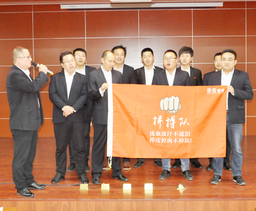 在宏岳營銷總監崔總和張總的見證和營銷中心全員熱烈的掌聲中,戰隊成員充滿了決心和勇氣,用鋼鐵般的行動證明他們必勝的決心,各戰隊成員們也用最佳的狀態做好了一切準備,為共同的榮譽奮戰向前。