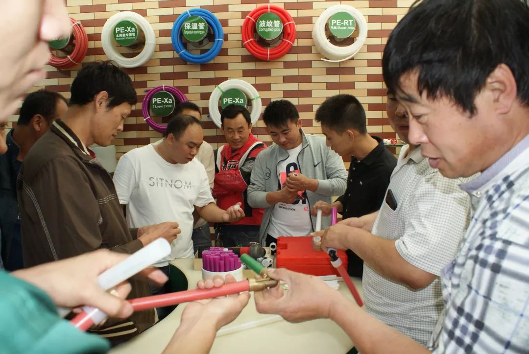 宏岳1+事業部產品工程師依工詳盡介紹了宏岳1+的產品技術以及應用知識,著重講解了pe-xa的施工工藝、PVC快修管件及其它配套產品的應用,現場通過實物實例,充分地展示了宏岳1+產品的技術先進性和質量可靠性。