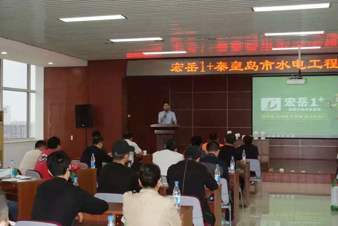 會議現場部分,宏岳1+事業部副總經理劉總首先對到場的各位水電技師表示熱烈的歡迎與感謝,他表示:宏岳1+的規范發展離不開所有水電技師的共同努力,宏岳1+將有信心跟所有水電技師們一起將規范的施工標準推廣開來。