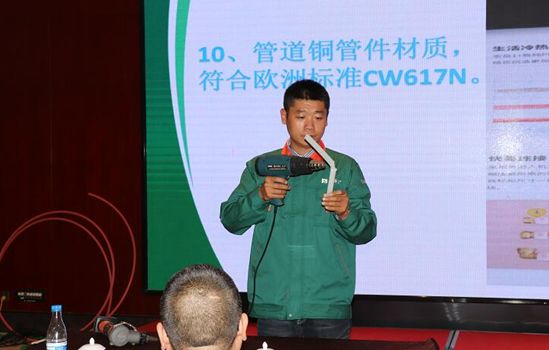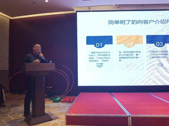 接下來,宏岳集團暖通工程師汪工為大家講解了宏岳1+的施工標準、技術要點及綜合產品系統,并著重介紹了宏岳1+“PE-Xa致純冷熱水管道系統”頭尾一根管、維護更便利等獨特優勢,通過案例講解、現場演示等方式,讓參會人員切實的感受到不一樣的產品、不一樣的宏岳1+。
