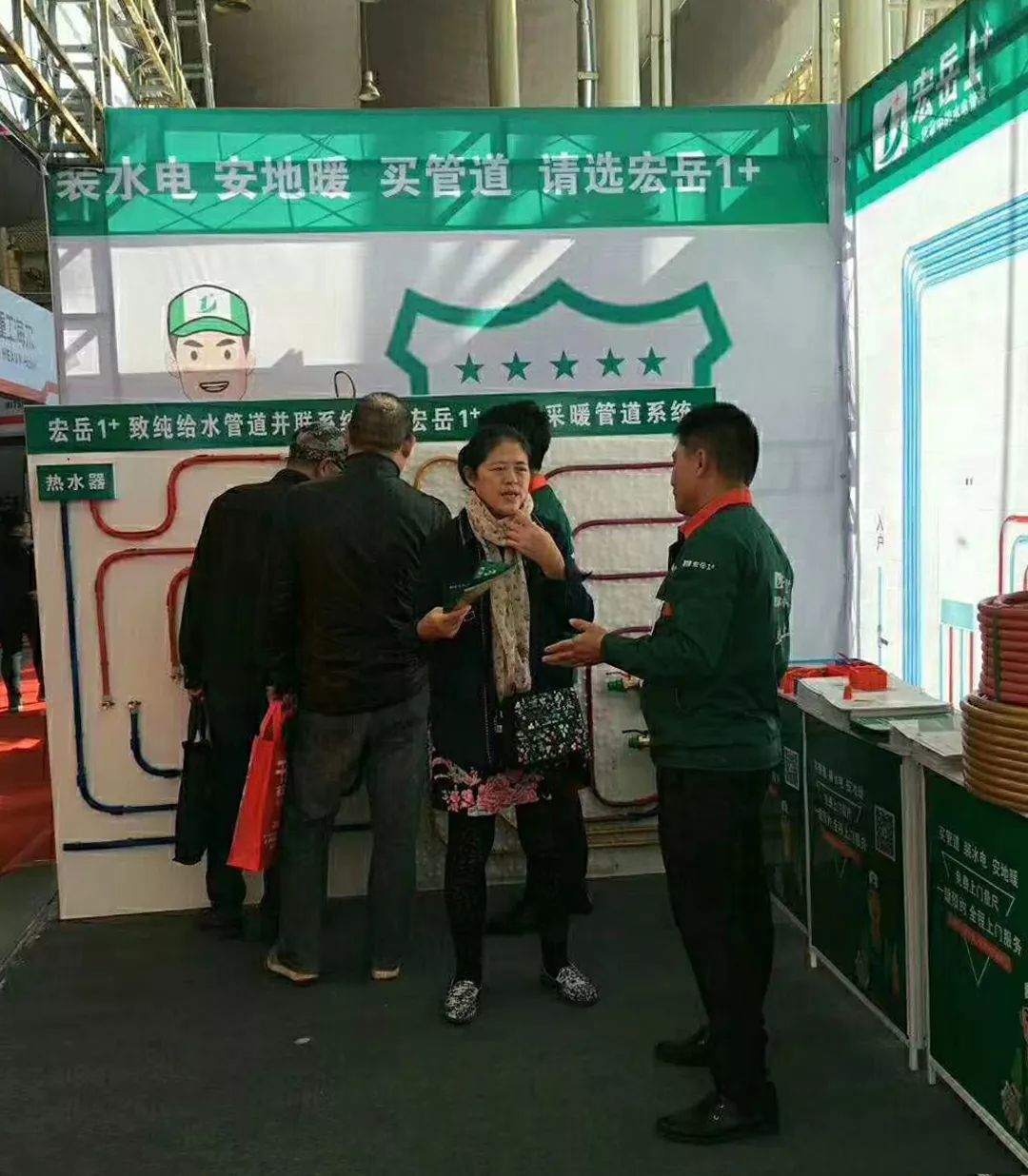 2018年10月26日,中團網第47屆家博會在山東濰坊拉開序幕,宏岳1+亮相本次家博會,現場展示了宏岳1+全系列產品,涵蓋了宏岳1+PE-Xa“零”漏點給水系統、家裝精品PPR及PE-RT、PE-Xa地暖管等,吸引了眾多觀展客戶的關注。
