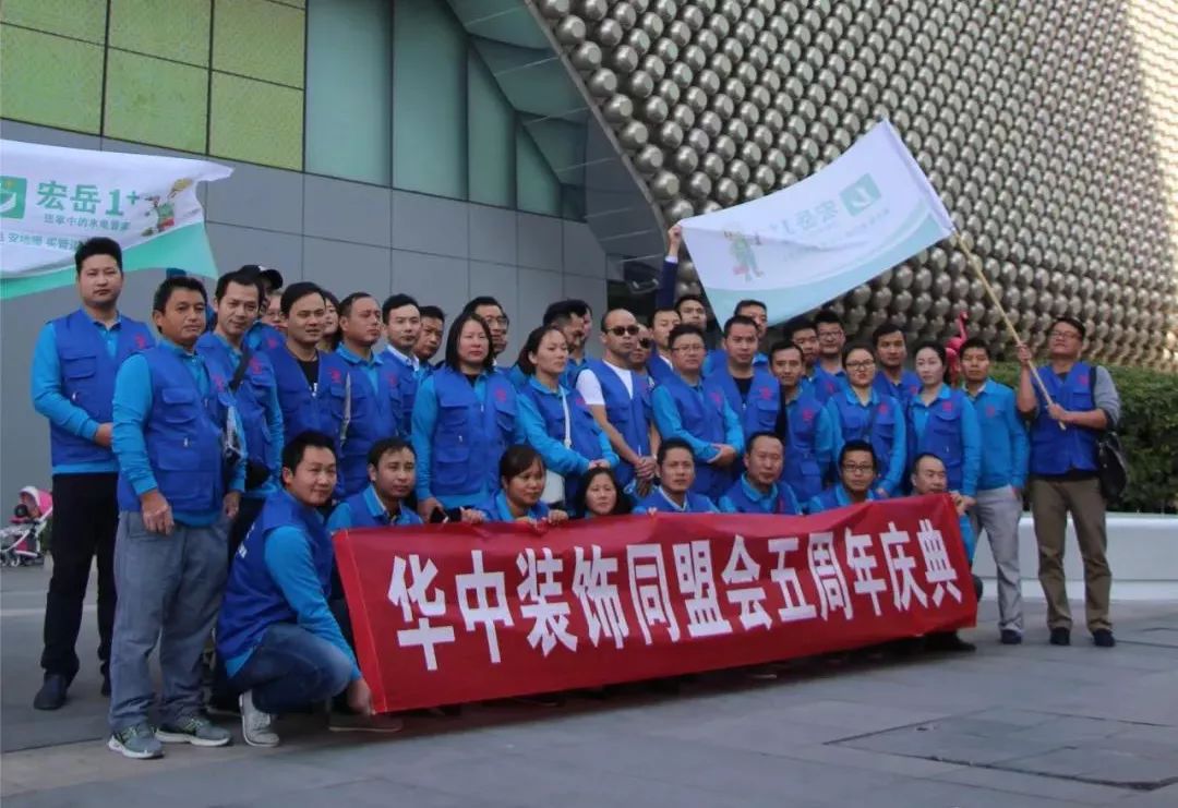 2018年10月28日,宏岳1+武漢江夏服務中心受邀參加武漢家裝同盟會成立5周年慶典,武漢地區家裝公司、建材代理商等100余家公司參加了本次慶典活動。