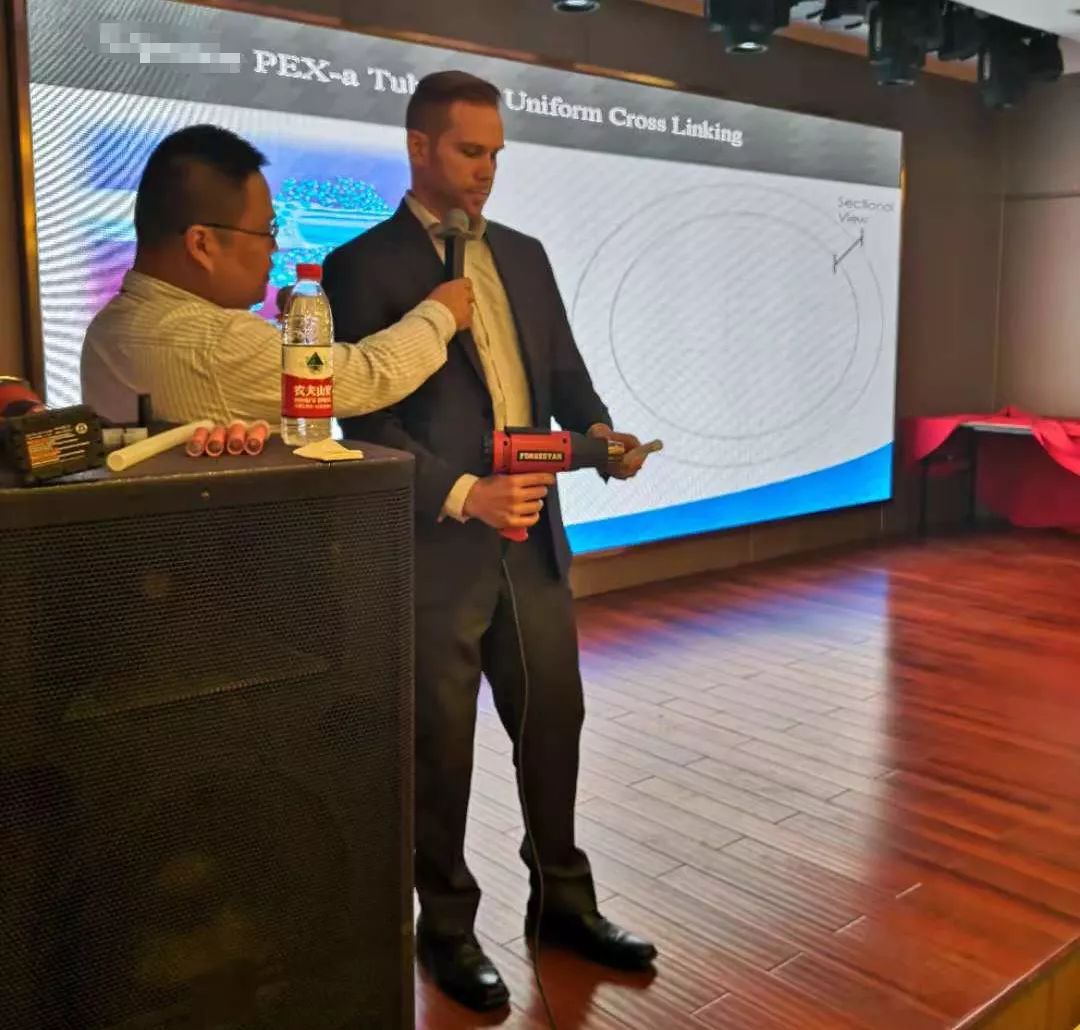 隨后,宏岳集團美國技術總監JOHN先生為大家詳盡介紹了PE-Xa"零"漏點給水系統的性能優勢及該系統在美國乃至國際市場上的廣泛應用情況,讓參會人員對國際領先的產品系統與應用技術也增進更深的認識與了解。
