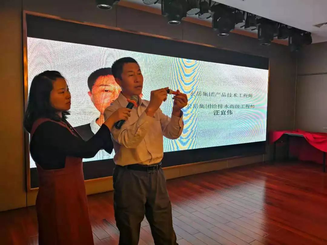 宏岳集團高級技術工程師汪宜偉先生,對宏岳1+的施工標準及技術要點進行了現場講解,并著重介紹了宏岳1+“PVC快修管件”、“高水封大流量地漏”等特色產品,通過案例講解、現場演示等多種方式,讓參會人員切實的感受到不一樣的產品、不一樣的宏岳1+。