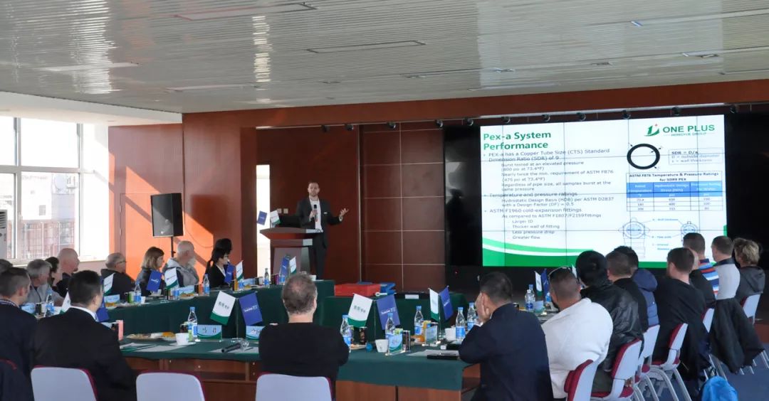 考察期間,宏岳美國公司市場技術(shù)總監(jiān)JOHN先生為澳洲客戶進(jìn)行了PE-Xa管道應(yīng)用技術(shù)講座。
