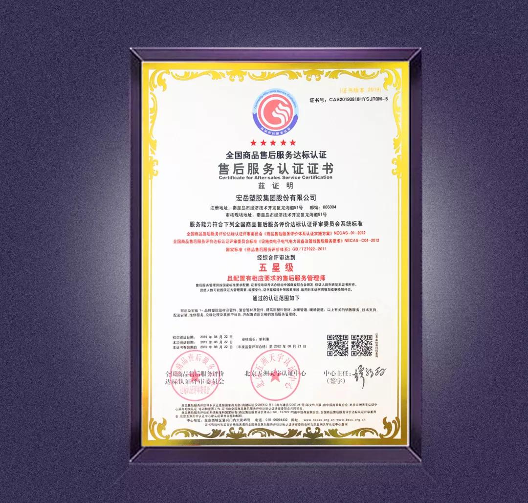 宏岳1+完善的售后服務,使得宏岳1+于2019年8月獲得全國商品售后服務五星級認證。
