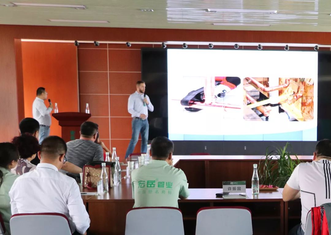 宏岳集團1+事業部總經理顧春龍先生現場為大家講解了宏岳1+模式及市場操作,并分享了目前管道行業的現狀,引起了廣泛共鳴。