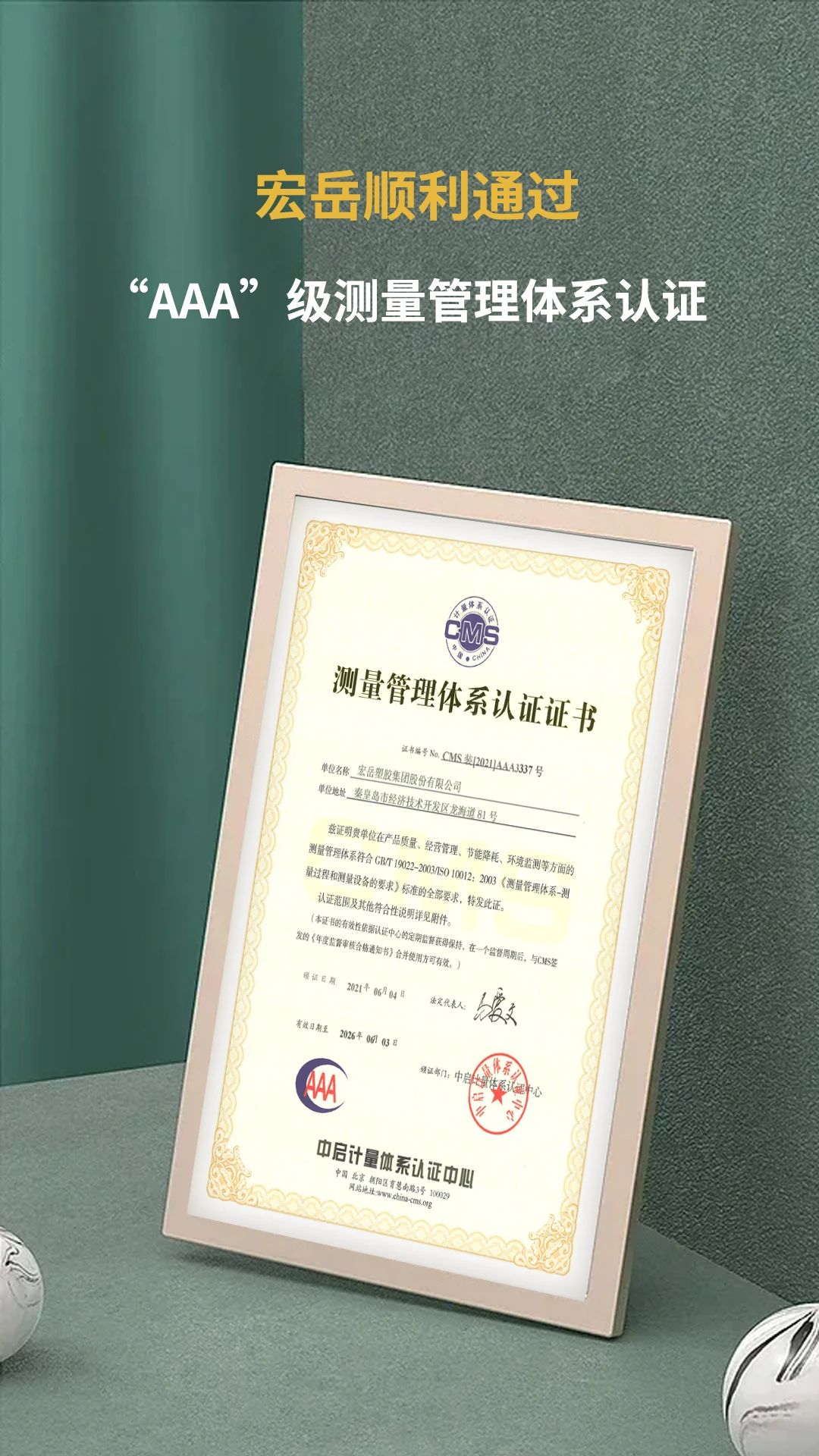 宏岳順利通過ISO10012:2003“AAA”級(jí)測量管理體系認(rèn)證,并獲得證書。